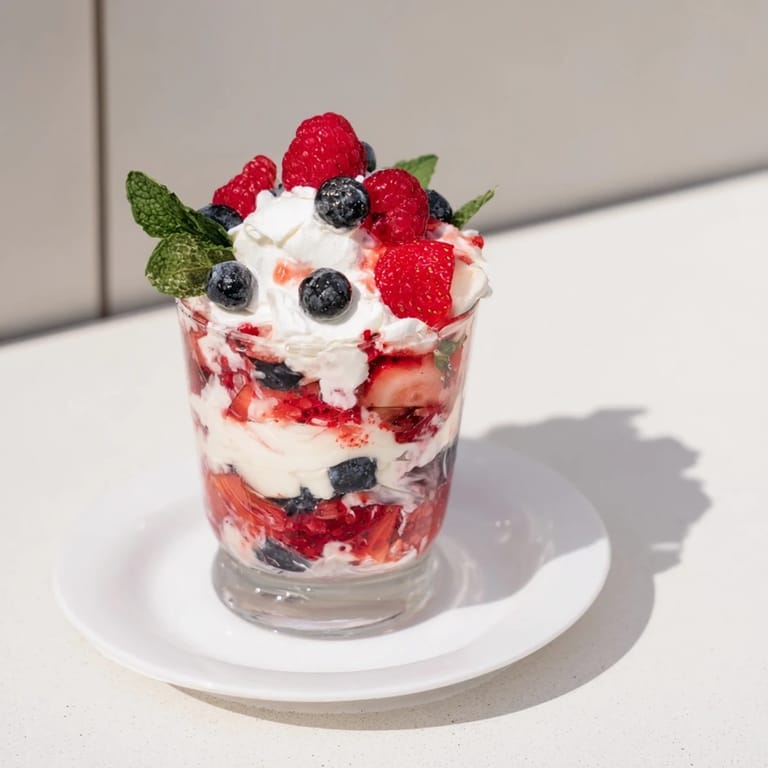 Pin it A refreshing, light dessert featuring layers of juicy mixed berries and fluffy whipped cream. Perfect for a simple, sweet evening treat thats both satisfying and easy to prepare.