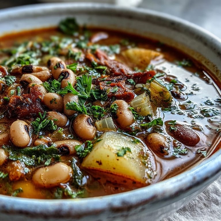 Pin it There's something about stirring a pot of black-eyed peas that makes you feel like you're doing something right, even if you're just following instinct. My neighbor stopped by one afternoon while I had this stew simmering, and the smell alone had her asking for the recipe before she'd even tasted it. What started as a simple way to use up pantry staples became the dish I make whenever someone needs comfort food that actually nourishes you.