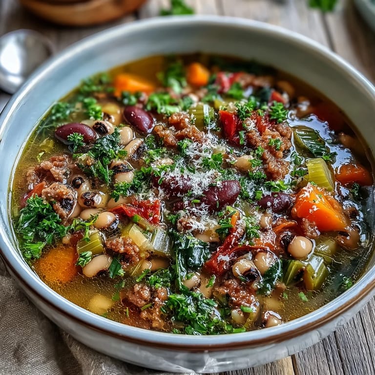 Pin it My neighbor showed up at my door one crisp October afternoon with a bag of fresh black-eyed peas from her garden and a story about her grandmother's soup pot. I'd never made black-eyed peas before, but something about her enthusiasm made me want to try. That evening, as the sausage sizzled and the kitchen filled with the aroma of thyme and garlic, I understood what she meant—this wasn't just soup, it was comfort in a bowl.
