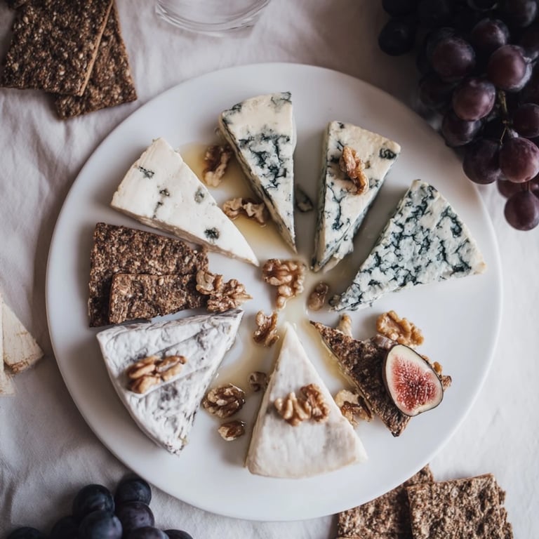 - Roquefort Cheese: The peppery one with those bold blue veins; it's the most intense of the bunch and anchors your mountain.