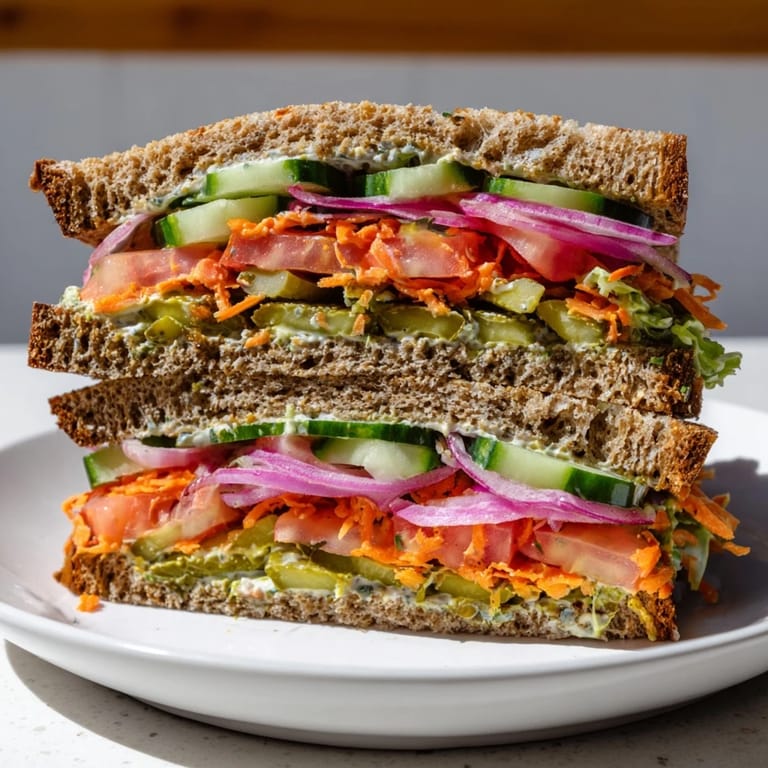 I've tried this on everything from white bread to rye, and each one tells a different story. Sourdough brings its own tangy notes that echo the pickles; whole grain adds earthiness and stands up to the weight of all those vegetables without falling apart. Rye would give you a delicatessen vibe, while pumpernickel brings a subtle sweetness that balances the brine. The bread isn't just a vessel—it's a conversation partner in this sandwich.