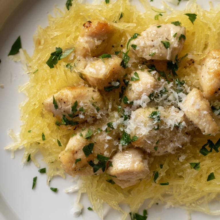 The cooked chicken and sauce freeze well for up to three months. Freeze the spaghetti squash separately to prevent sogginess. Thaw and reheat gently on the stovetop.