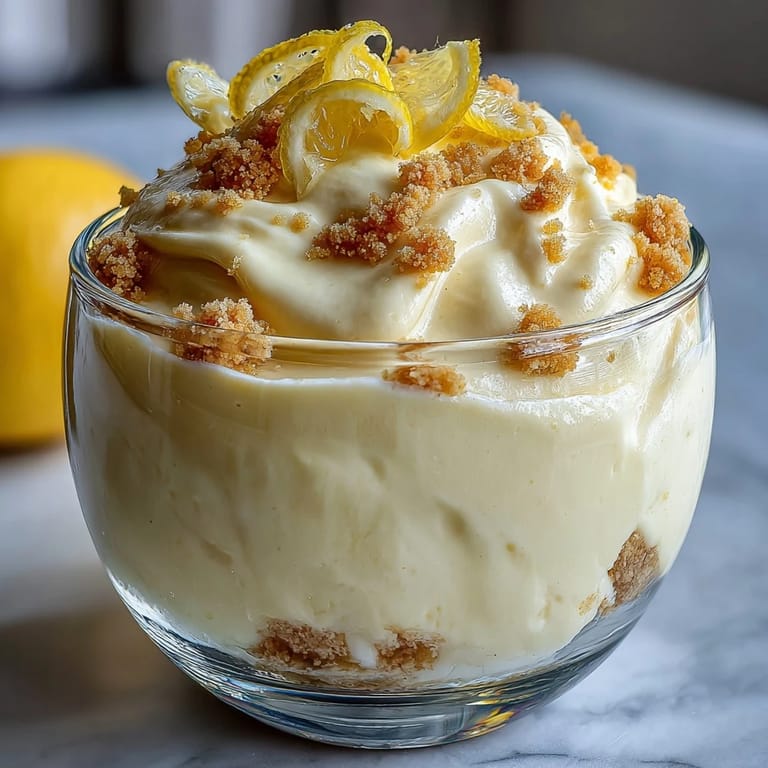 Pin it There's something about the way lemon mousse catches the light in a glass that makes you pause before eating it. My neighbor brought over a version of this one summer afternoon, and I watched her layer the buttery crumble with such casual confidence that I felt compelled to recreate it that same evening. What struck me wasn't just how elegant it looked, but how quickly it came together—barely thirty minutes of actual work for something that tastes like you spent all day in the kitchen. The brightness of fresh lemon paired with that crumbly, indulgent base became my go-to when I needed to impress without the stress.