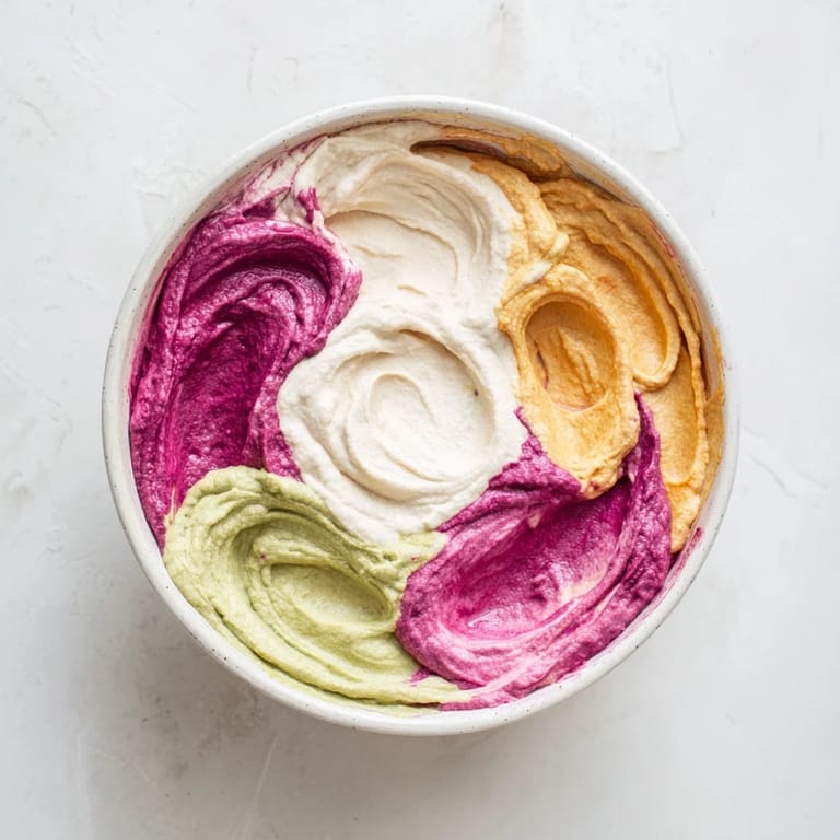 Pin it The first time I made this, I was panicking about what to serve at a dinner party. I'd bought all these colorful dips without a real plan, and they were sitting in my fridge looking like a missed opportunity. Then it hit me—what if I stopped thinking of them as separate dishes and turned them into something that looked like art? I grabbed a platter, started swirling, and suddenly I had something that looked like I'd been planning it all along.