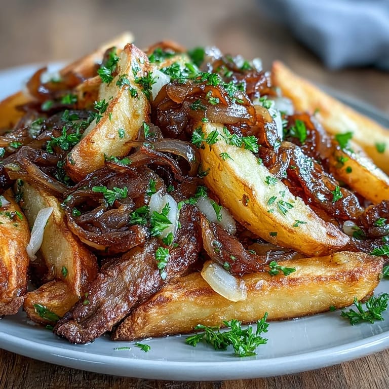Pin it My dad used to say the mark of a good cook wasn't fancy techniques but knowing how to make people genuinely happy with simple things. One Sunday, I was tasked with bringing a side dish to a family gathering, and I decided to elevate something everyone loved: steak fries. The moment I pulled those golden fries from the oven and tossed them with caramelized onion and garlic butter, my younger cousin literally gasped. That's when I realized this wasn't just a side dish anymore—it was the thing everyone would remember.