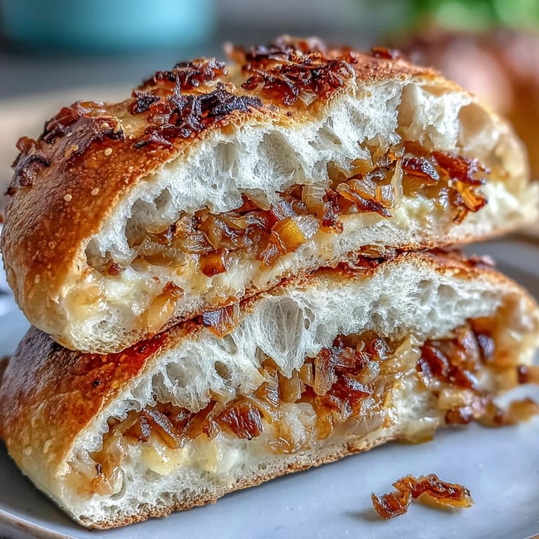 Pin it There's something almost meditative about shaping bagels on a Sunday morning, especially when your kitchen smells like caramelized onions and sourdough tang. My first batch turned out dense and flat, but then I learned the secret was patience—not just in the fermentation, but in respecting that tangy starter and giving it time to work its magic. These sourdough onion bagels became my answer to those bakery visits, and honestly, they're better because I can taste my own time in every chewy bite.