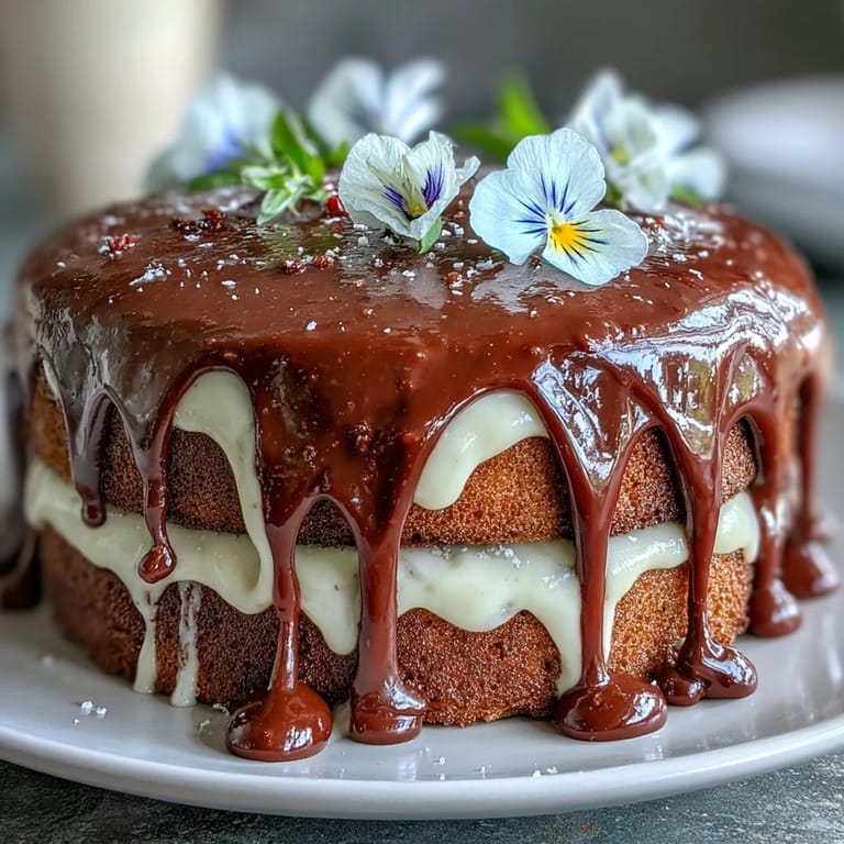 Pin it This cake not only delights the taste buds but also serves as a centerpiece for any gathering. Each layer is carefully crafted to balance sweetness and citrus brightness, while the white chocolate ganache drip adds a creamy touch with visual allure. The edible flowers bring a natural, elegant charm that embodies the essence of the season.